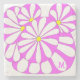 Personalisierter Untersetzer aus Stein mit modernem abstraktem Blumendesign in Rosa. Enthält anpassbare Monogramme.