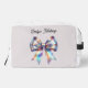 Diese Kosmetiktüte verfügt über einen zauberhaften, mit einem Namen personalisierten Bogen. Das helle Tanzen der wunderschönen Bug-Farben, das ganze Set vor einem pulvrigen rosa Hintergrund, macht es zu einem funktionalen und stilvollen Accessoire. Der Bogen und die Personalisierung sind auch auf der Rückseite dieser Tasche.