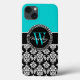 Personalisiertes anfängliches Aqua Black Damask Mu Case-Mate iPhone Hülle