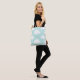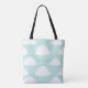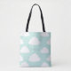 Niedliche und skurrile Tasche mit weißer Wolke auf aquablauem Hintergrund. Diese Tasche kann personalisiert sein, ideal als Baby Dusche Gefallen Taschen oder als Geschenk.