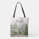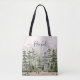 Die Personalisierte Watercolor Green Pine Forest Mountain Tote Tasche. Mit einer Illustration der immergrünen Wälder. Fügen Sie Ihrem Stil eine Touch rustikalen Charmes hinzu. Geeignet als Geschenk für Naturliebhaber.