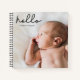 Journal und erfassen das erste Jahr des Babys mit seinem personalisierten Notizbuch. Passen Sie die Vorlage an, um ein Foto auf dem Schriftart und auf der Rückseite einzufügen, den Namen des Babys und eine spezielle Nachricht von Ihnen auf der Rückseite zu erhalten. Moderne Schrift für das Wort "hallo".