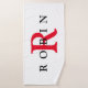 Qualitativ anpassbares Badetuch mit dem ersten und ersten Namen des Eigentümers. Sehr geschmackvoll. Rotes und schwarzes Thema, andere verfügbar.