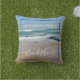 Fügen Sie Ihrem Strandhaus mit diesem personalisierten Kissen im Freien Küstenstyle hinzu. Das Design zeigt ein ruhiges Foto der blauen und weißen Wellen, blauer Himmel und goldener Sand der Küste Melbourne, in Australien. Der moderne, weiße Text ist anpassbar, sodass Sie Ihren eigenen Familiennamen hinzufügen können.