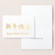 Chinesisches Neujahr personalisierte individuelle elegante minimalistische Gold Foil Chinesische Neujahrskarte. Mit chinesischem Gruß bedeutet das Glück im neuen Jahr. Mit dem vollständig anpassbaren Goldfolientext können Sie den chinesischen Gruß ändern, personalisieren und einzigartig machen. Karo der Erholung der Kollektion für zusätzliche koordinierende und passende Party-Vorräte, Geschenke und Gefälligkeiten, Dekorationen, Accessoires, etc.