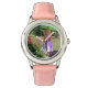 Kinderuhr aus Edelstahl mit rosa Lederarmband