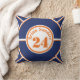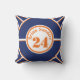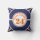 Personalisiertes, blaues und orangefarbenes Kissen