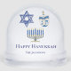 Personalisiertes blaues und weißes Glück Hanukkah Schneekugeln
