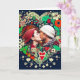 Personalisierte Weihnachtskarte. Hübsche, dunkelblaue und beige farbenfrohe Blume mit einem blühenden Herz im Stil der Volkskunst. Fügen Sie ein Bild von Ihnen und Ihrem Partner in den personalize Bereich.