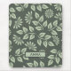 Personalisiertes Blumenmuster Mauspad. Grünes Blumenmuster mit kleinem Namensfeld im Blocktext in der unteren Mitte.