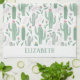 Kakteen botanischer Druck mit einer Vielzahl von blühenden Kakteen, niedlichen fallenden Blume und zusammengesetzten Blätter. Set auf Weiß. Personalisieren Sie Ihren Namen oder Ihre Nachricht in einem hochgradig grünen Schriftart.