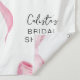 Personalisiertes Coquette-Brautparty im Hintergrund. Ein komplett rosa Bogendruck, der mit dem Namen und der Veranstaltung der Braut personalisiert ist. © Perfect für das Thema "She's Tying the Knot". Kimbellished, LLC