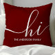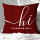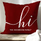 Herzlich willkommen in diesem personalisierten Kissen mit einer warmen und stilvollen Touch. Dieses bordeauxrote Kissen mit seinem modernen Drehbuch "hi" und seinem individuell anpassbaren Familiennamen ergänzt verschiedene Wohngestaltungen. Ideal, um eine persönliche Touch zu Ihrem Wohnzimmer oder Schlafzimmer hinzuzufügen.