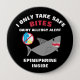 Ich nehme nur sichere Bisse. Molkereiallergie-Alarmknopf mit grauer Haifischschwimmen und schwarzem Hintergrund. Text im Weiß und in einem keinem Molkereisymbol. Fertigen Sie mit Namen oder anderem Text besonders an. Befestigen Sie zu den medizinischen Taschen zur Anmerkung "Adrenalininnere". Entwürfe durch Lil Allergie befürwortet www.lilallergyadvocates.com
