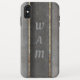 Großartige Carbon Dust iPhone Gehäuse mit eigenen Initialen, auf dunkelgrauem, kratztem Hintergrund. Fügen Sie Ihren eigenen Namen oder Ihre eigenen Initialen hinzu, indem Sie auf "Anpassen" klicken. Schriftart, Schriftart und Schriftart sind individuell einstellbar.
