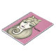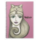 Niedliches Notizbuch mit einer Abbildung eines Mädchens, das von einer Katze umarmt wird. Personalisieren Sie Ihren Namen und wählen Sie eine beliebige Hintergrundfarbe, die Sie gewollt haben. Hier auf rosa dargestellt.