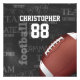 Ein modernes amerikanisches Gitterrost-Design mit einem Fußball auf einem Tonträgerhintergrund mit Fußball-Terminologie. Das Design enthält einen anpassbaren Text für den Namen und die Nummer des Fußballspielers oder Gittereisenlüfters. Dieses Design wurde teilweise mit Grafiken erstellt, die von Graphics Factory lizenziert wurden.