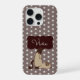 Geben Sie Ihrem Telefon mit dieser braunen Punkte-Handyhülle ein süßes und gemütliches Aussehen. Das Design zeigt eine süße Katzenillustration auf einem warmen braunen Punkte-Hintergrund und schafft eine spielerische und stilvolle Atmosphäre. Was diese Hülle besonders macht, ist der personalisierte Name, der sie zu einem einzigartigen Accessoire macht, das nur für Sie hergestellt wurde. Sie ist perfekt für Katzenliebhaber, die etwas Lustiges, Persönliches und Unterschiedliches von gewöhnlichen Handyhüllen wollen.