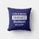 Moderne blaue, schwarz-weiße personalisierte Christliche Zitat Abschluss Kissen. Inspiration Christliche Zitat liest, um GOTT SEIN DIE GLORE. Das Design zeigt ein gefliestes Muster aus kleinen, schwarzen Abschluss-Oberteilen (oder Mörtel) vor einem reichen blauen Hintergrund. Das Wort GRADUATE erscheint als fett blaue Typografie in einer weißen Schachtel. Sie können das Angebot durch Ihre eigene Nachricht oder Betreff ersetzen, z. Engineering, und fügen Sie Ihren Namen und Klassenjahresdetails hinzu. Das Design wird auf der Rückseite wiederholt. Dies würde ein stilvolles Sake-Geschenk für einen Absolventen machen und ist Teil der Geschenke für Absolventen Sammlung von Berean Designs.