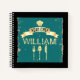 Cooles aquamarines männliches Rezept-Notebook mit Retrogelb-Koch Hut und Besteck. Personalisieren Sie mit Ihrem Namen und Titel (optional).