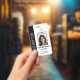 Erschaffen Sie mit diesem vertikalen Abzeichen eine ausgeklügelte und unvergessliche Markenidentität. Die gepflegte, zweifarbige Ästhetik zeichnet sich durch ein gewagtes, schwarzes Bar, das seitlich runter läuft, aus und steht in perfektem Kontrast zum weißen Hintergrund, in dem das Foto und die Informationen Ihres Mitarbeiters angezeigt werden. Dieses moderne Design fügt eine Touch kreativen Flairs hinzu und bewahrt gleichzeitig einen beruflichen und organisierten Look.