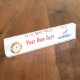 Namensplakette mit Uhr