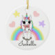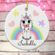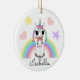 Personalisiertes Einhorn, Schmetterling und Regenb Keramik Ornament