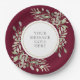 Mit zarten, weichen Aquarellfarben auf bordeauxrotem Hintergrund kann diese schicke botanische Papierplatte mit Ihrem besonderen Set in elegantem Text personalisiert werden. Ideal für Hochzeiten, Brautpartys, Babyduschen, Taufe, Verlobungsfeiern, Jubiläumsfeiern und Geburtstagsfeiern. Entwickelt von Thisisnotme©