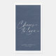 Feiern Sie die Liebe mit diesem eleganten Hochzeitskunsthandtuch mit der Phrase "Cheers to Liebe" in einem stilvollen Script-Schriftart. Der tiefblaue Hintergrund mit weißen Buchstaben schafft einen zeitlosen und raffinierten Look. Personalisiert mit den Namen der Paare und ihrem besonderen Datum fügt dieses Handtuch einer Hochzeitsfeier, einer Verlobungsfeier oder einer Jubiläumsfeier eine romantische und raffinierte Touch hinzu. Ideal, um Ihrer Veranstaltung Eleganz zu verleihen und gleichzeitig ein praktisches und stilvolles Detail für Ihre Gäste zu bieten.
