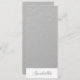 Dieses personalisierte Lesezeichen zeichnet sich durch eine minimalistische und trendige elegante silberne Textur aus, mit einem individuelle Name in grauem Skript-Schriftart ganz unten. Auf der Rückseite ist die gleiche Textur, aber ohne den Namen. Sie können den Stil und die Farbe des Schriftartes im Entwurfswerkzeug anpassen.