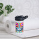 Fügen Sie Ihren Namen zu dieser coolen Roboter bunten Kätzchen mit mystischen grünen Augen und farbenfrohen Fell KI generierten Wasserflasche.