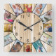 Personalisiertes Familienfoto Kiefernholz Quadratische Wanduhr