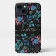 Personalisieren Sie diese helle und farbenfrohe Hülle mit einem Namen oder Monogramm in handgeschriebener Schrift. Das Design zeichnet sich durch ein buntes Muster an Blume und botanischen Blätter auf schwarzem Hintergrund aus.