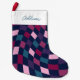 Personalisierter, kühl karierter Muster Weihnachts-Strumpf. Farben in blau, aquamarin, lila und pinkt. Personalisieren Sie die Vorlage mit Ihrem Namen. Alle Farben sind bearbeitbar! (Achten Sie darauf, auch die andere Seite zu bearbeiten.) © Kimbellished, LLC