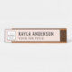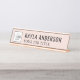 Das moderne, rosa und schwarze Schreibtischschild enthält ein Firmenlogo und einen Sondertext für den Mitarbeiternamen und den beruflichen Jobtitel in stilvollen Schriftart. Kann vollständig mit Ihrem eigenen Text und Farben personalisiert werden, zusammen mit Ihrer Auswahl an Rahmenfarben.