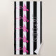Dieses Badetuch ist modern und mit mutigen Schwarzweiss-Streifen und rosa Flamingos modisch. Personifizieren Sie es mit Ihrem Namen.