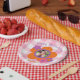 Personalisieren Sie diese niedlichen Party Papier Teller mit Ihrem Foto und Schreiben. Der hübsche, rosafarbene und weiße Büffel-Karo mit rosa, lila und orangefarbenen Retro-Blume ist ein Hit für die Kleinen.