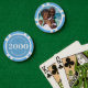 Personalisierte Poker-Jetons mit einem eigenen Foto und eigenem Text (Familienname, festes Jahr, etc.). Dieses hellblaue Design enthält die Nummer 1000, kann aber mit beliebigem Wertebetrag bearbeitet werden.