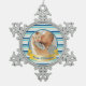 Personalisiertes Foto Moderner Streifen Aquamarin Schneeflocken Zinn-Ornament