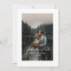 Save the Date personalisierte Fotokarte. Ersetzen Sie das Foto durch ein eigenes Foto und fügen Sie eine personalisierte Notiz auf der Rückseite hinzu, oder löschen Sie das Textfeld für Leerzeichen. Elegantes Skript und Blocktext auf weißem Hintergrund, vorne und hinten.
