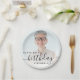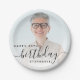 Moderne Teller für Geburtstagsfeier mit individuellem Foto. Ersetzen Sie das Beispielbild einfach durch ein Foto des Ehrengast. Das Wort "Geburtstag" erscheint in eleganter schwarzer Schrift. Personalisieren Sie den Text mit dem Namen und Geburtstag Jahr in schwarzen Sans Serif Schriftart. Ein überlagertes Weißgradientenprofil hilft, den Pop des Textes zu erzeugen.