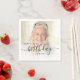 Moderne Geburtstagsnapkins mit einem individuellen Foto. Ersetzen Sie das Beispielbild einfach durch ein Foto des Ehrengast. Das Wort "Geburtstag" erscheint in eleganter schwarzer Schrift. Personalisieren Sie den Text mit dem Namen und Geburtstag Jahr in schwarzen Sans Serif Schriftart. Ein überlagertes Weißgradientenprofil hilft, den Pop des Textes zu erzeugen.