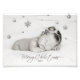 Schönes und elegantes Weihnachtsdesign mit einem Bild einer neugeborenen und silbernen Garage mit Weihnachtsdekoration, silbernen Weihnachtsbällen, Silberschneeflocken und Sternen. Eine Kalligrafie Frohe Weihnachten im Boden. Personalisieren Sie das Foto, indem Sie es durch Ihr eigenes ersetzen und die Textzeile ändern. Gute Ferien!