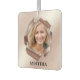 Fügen Sie Ihrem neuen Autodekor einen persönlichen Stil hinzu, mit diesem Lufterfrischer, mit dem Sie Ihr eigenes Produkt entwerfen können, indem Sie Ihr eigenes Foto und Ihren eigenen Namen hinzufügen. Fügen Sie einfach Ihr Foto hinzu und geben Sie Ihren Namen ein. Der Rahmen sieht aus wie ein Dornpapier in Rose, goldfarben. Moderne und trendige Autodekoration