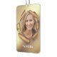 Fügen Sie Ihrem neuen Autodekor einen persönlichen Stil hinzu, mit diesem Lufterfrischer, mit dem Sie Ihr eigenes Produkt entwerfen können, indem Sie Ihr eigenes Foto und Ihren eigenen Namen hinzufügen. Fügen Sie einfach Ihr Foto hinzu und geben Sie Ihren Namen ein. Der Rahmen sieht aus wie ein Dornpapier in Rose, goldfarben. Moderne und trendige Autodekoration