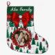 Fügen Sie Ihrem Urlaubsstil eine persönliche Touch mit diesem individuellen Weihnachtsgeschenk hinzu, der perfekt geeignet ist, um die beliebtesten Momente Ihrer Familie, Ihr Lieblingsbild oder sogar Ihr liebliches Haustier zu präsentieren. Dieser wunderschön gestaltete Strumpf mit festlichem Grün und Rot, klassischen Weihnachtsbäumen als Hintergrund. Ein großer, auffälliger roter Bogen mit einem glitzernden Juwelenakzent sitzt oben und schafft so einen fröhlichen und eleganten Look. Unter dem Bogen gibt es Platz für einen personalisierten Namen im stilvollen Skript-Schriftart.