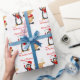 Dieses festliche und Spaß wunderliche personalisierte Verpackungspapier froher Weihnachten hat ein niedliches wellenartig bewegendes rotes gerochenes Ren des Cartoon und einen Cartoon wellenartig bewegenden Penguin in einer Sankt-Kappe auf einem weißen Hintergrund mit blassen roten Schneeflocken. Wenn Sie irgendwelche zusammenpassenden Einzelteile benötigen oder wenn Sie Unterstützung oder Änderungen benötigen, emailen Sie bitte niteowlstudio@gmail.com.