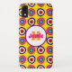 Diese hellgelbe Zellkastenabdeckung weist ein buntes Kreislaufmuster auf, Kreise und mehr Kreise in heißen rosa, orangen, grünen, lila, blauen, marinösen und bordeauxfarbenen Kreisen. Passen Sie den weißen und lila Kreis mit Ihrem Namen, Initialen, Monogramm oder anderen Formulierungen an. Machen Sie den Kreis und nennen Sie ihn so groß oder klein, wie Sie wollen, oder entfernen Sie ihn ganz.