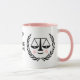Funny Anwalt oder Jurastudium Geschenk-Tasse mit Waagen der Gerechtigkeit und motivierend Zitat. Bearbeiten Sie Text, um den Namen des Anwalts hinzuzufügen.