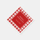 Diese Papierservietten aus personalisiertem Party verfügen über ein rotes und weißes Gingham-Muster mit einem großen roten Quadrat in der Mitte und einem Vorlagenbereich, in dem Sie Ihre Veranstaltungsinformationen, Ihr Veranstaltungsdatum oder einen anderen benutzerdefinierten Text hinzufügen können. Klicken Sie auf "Anpassen", um weitere Änderungen am Design vorzunehmen.